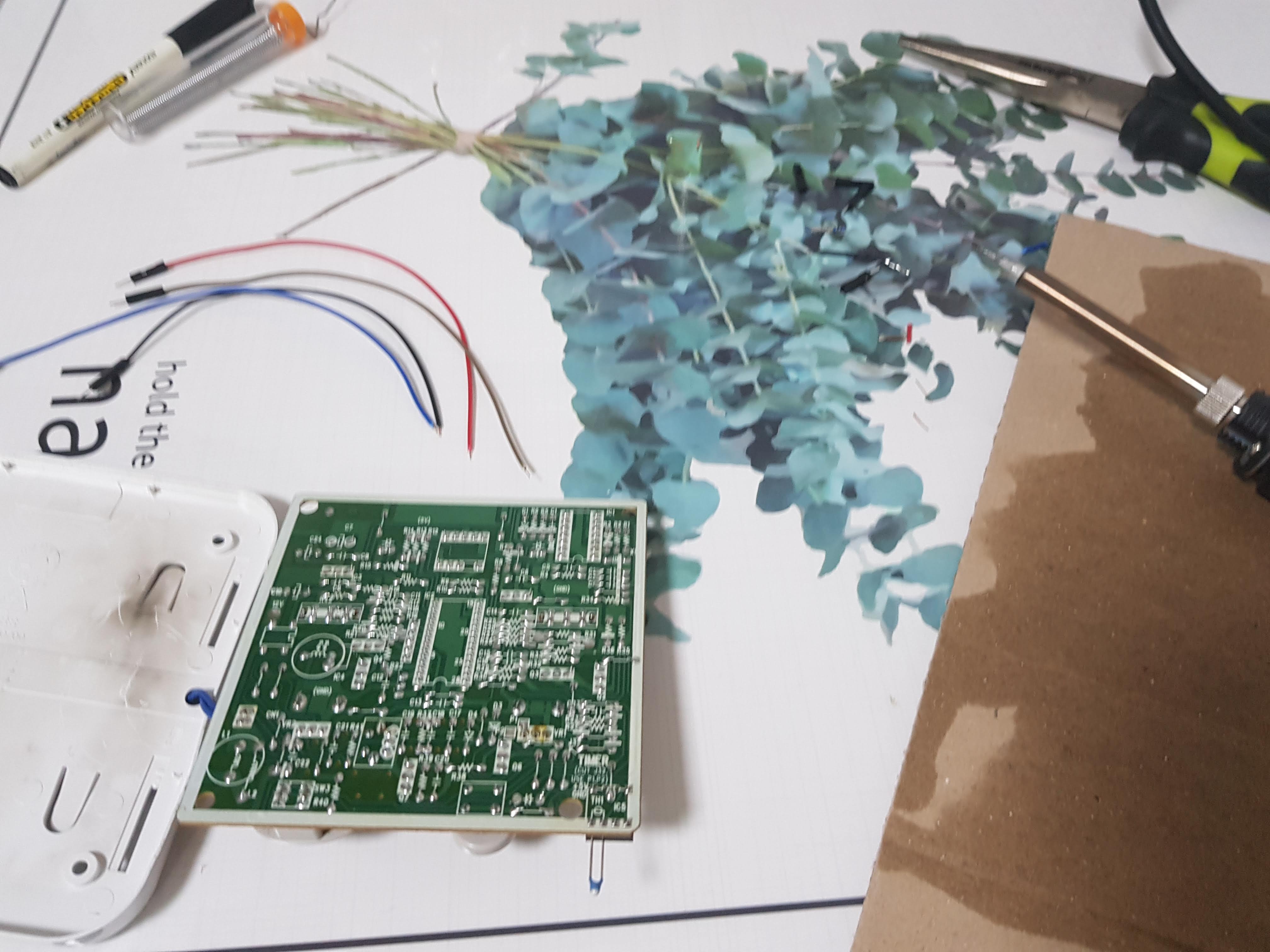그리고 기존 보일러 컨트롤러에 릴레이를 연결한다. 자취방에 사용하는 저렴한 제어기만 다루어 봐서 최신형 제어기는 잘 모르겠다. 어차피 최신형 제어기는 IOT 연동이 잘되서 밖에서도 제어할 수 있는 기능이 기본적으로 있는 것 같았다. 이때부터 전공 지식을 살려서 멀티미터로 전기가 통하는 곳을 하나씩 연결해서 제어를 할 수 있는 전원을 밖으로 빼준다.