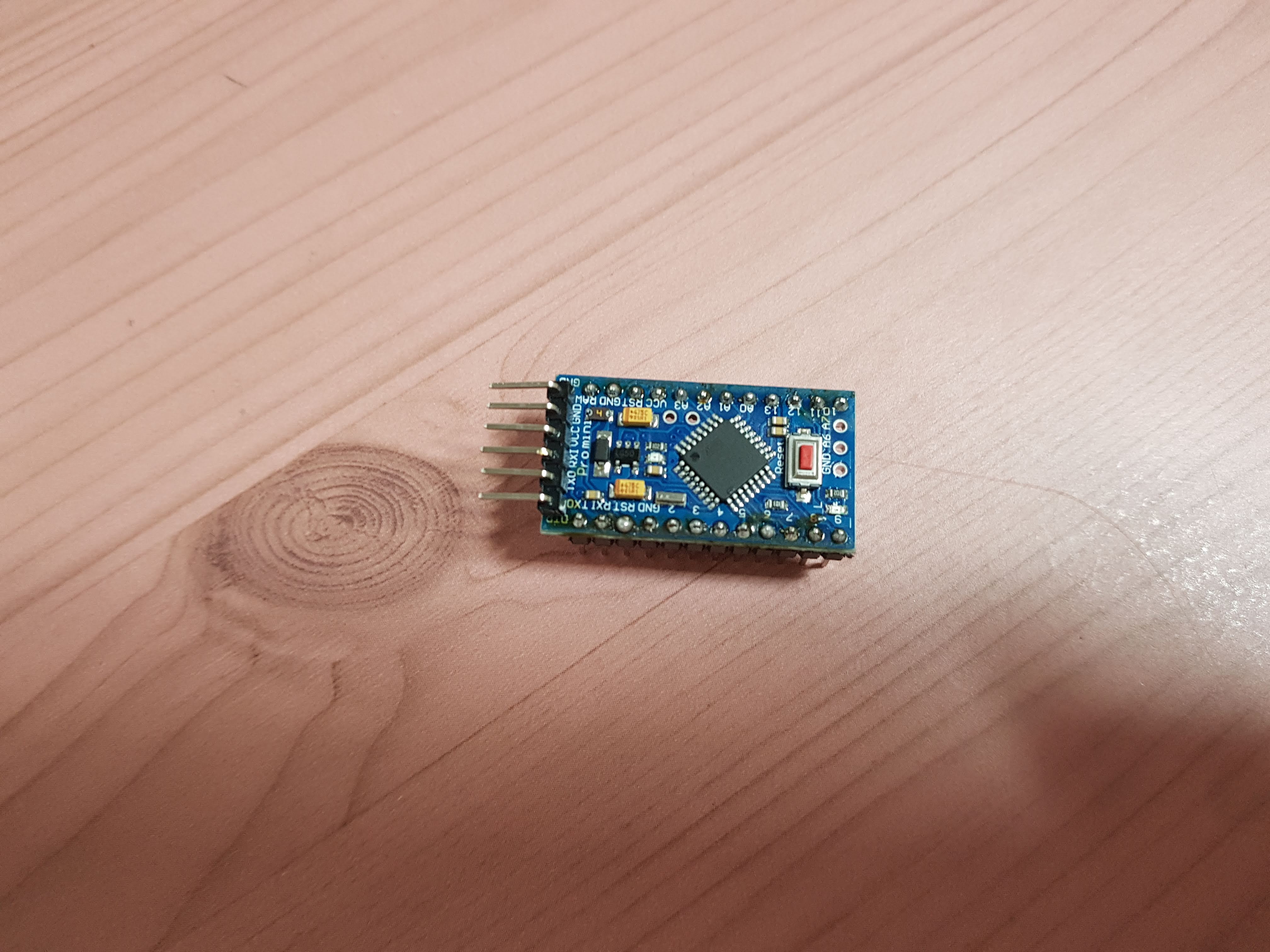 아두이노 프로의 외형은 이렇게 생겼다. 실제 판매를 할 때에는 (대부분의 경우에는) 핀헤더가 달려있지 않고 따로 배송이 오니 주의해야 한다. 나는 아두이노 프로에 납땜을 한 상태이기 때문에 핀헤더가 달려있다.