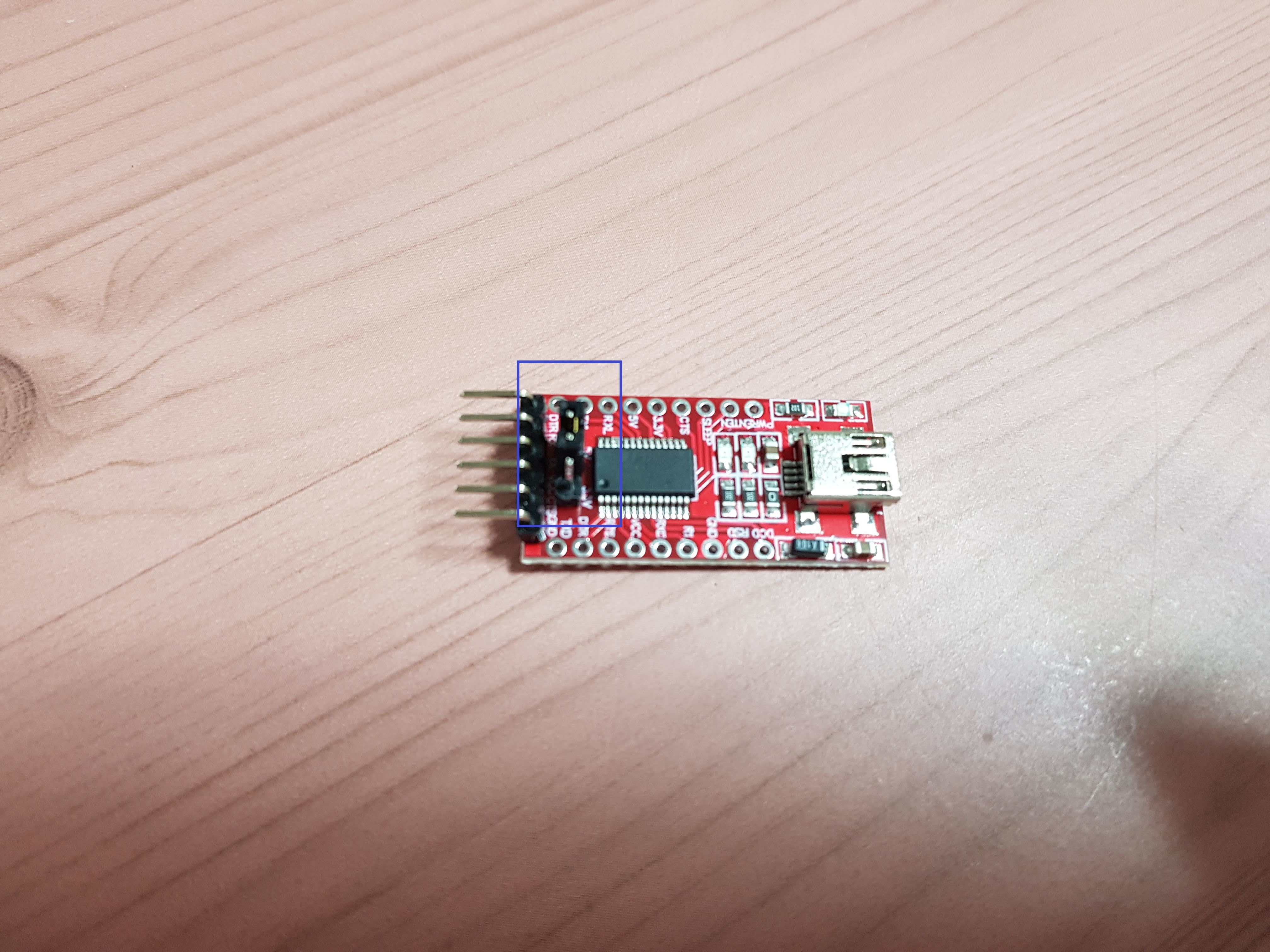 이렇게 생겼다. UART 변환 보드를 이용해서 올리면 업로드 직전에 리셋 버튼을 눌렀다가 뗀 상태에서 업로드를 해야한다. 이 방법의 가장 큰 단점은 타이밍 맞추기가 상당히 어렵다는 것이다. 하지만 이 보드는 자동 리셋으로 인해 간단히 업로드가 가능하다. 참고로 아두이노 프로는 5V 동작 보드와 3.3V 동작 보드가 따로 있기 때문에, 구매할 때 어떠한 보드인지 알아야 한다. 동작 전압이 다르면 사용법도 다르기 때문에, 필히 숙지하자. 위에 파란색 네모박스 안에 있는 핀은 5V 동작 보드와 3.3V 동작 보드를 설정하는 핀이다. 기본은 5V이며, 핀을 반대편으로 꼽으면 3.3V 보드에 작동되게 할 수 있다.