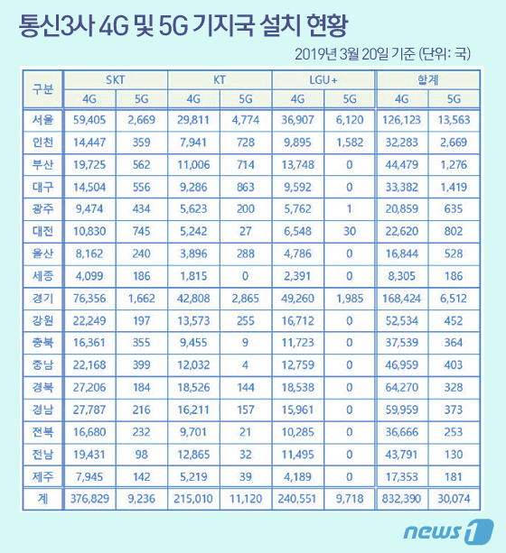 하지만 위의 자료를 보면, 5G기지국의 수는 턱없이 부족하다. 글을 쓰는 시점인 지금 20년 5월에는 저거보다는 훨씬 많이 설치가 되 있을 것이다. 그래도 압도적인 수의 차이가 보인다. 5G는 기지국을 더 설치해야 하는데, 수가 비슷하기는 커녕 말도 안되게 적은 수이다.