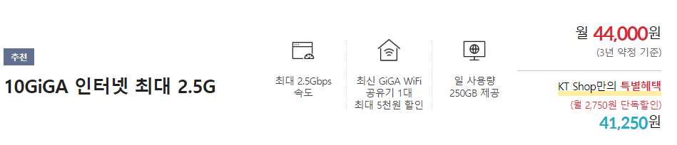 최대 2.5Gbps 라고 광고하고 있다. 이것은 2.5기가바이트가 아니라 2.5 기가비트이다. 우리가 통상적으로 생각하는 용량은 ~바이트 이다. 그렇다면, 통신사에서 광고하는 인터넷 속도를 통상적으로 생각하는 용량으로 변환할려면 어떻게 해야할까? 답은 8을 나누는 것이다. 단위 표기에 더 정밀한 방법이 있으나, 간단히 8을 나누면 된다. 2.5Gbps / 8 = 312MBps 의 결과가 나오는 것을 알 수 있다. 토렌트에서 시드가 싱싱할 때 토렌트를 받으면 대체로 최대 속도가 12메가바이트에 머무는 것도 이때문이다. 100/8=12.5 가 나오기 때문이다.