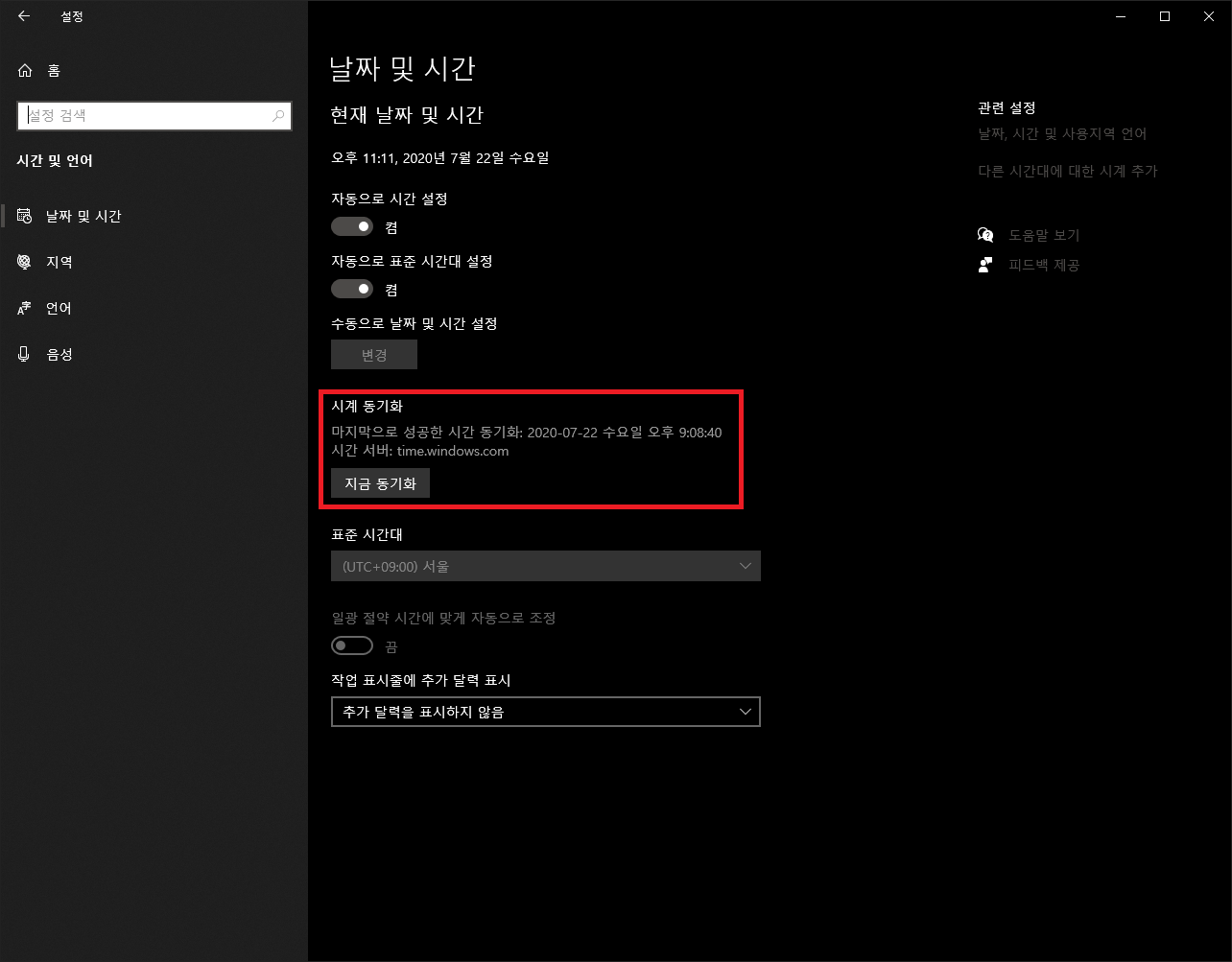 윈도우10 운영체제에서의 시간은 운영체제를 설치할 때 설정한 시간대로 유지가 된다. 하지만 가끔씩 예상치 못한 원인으로 인해 시간대가 달라지는 경우가 있다.