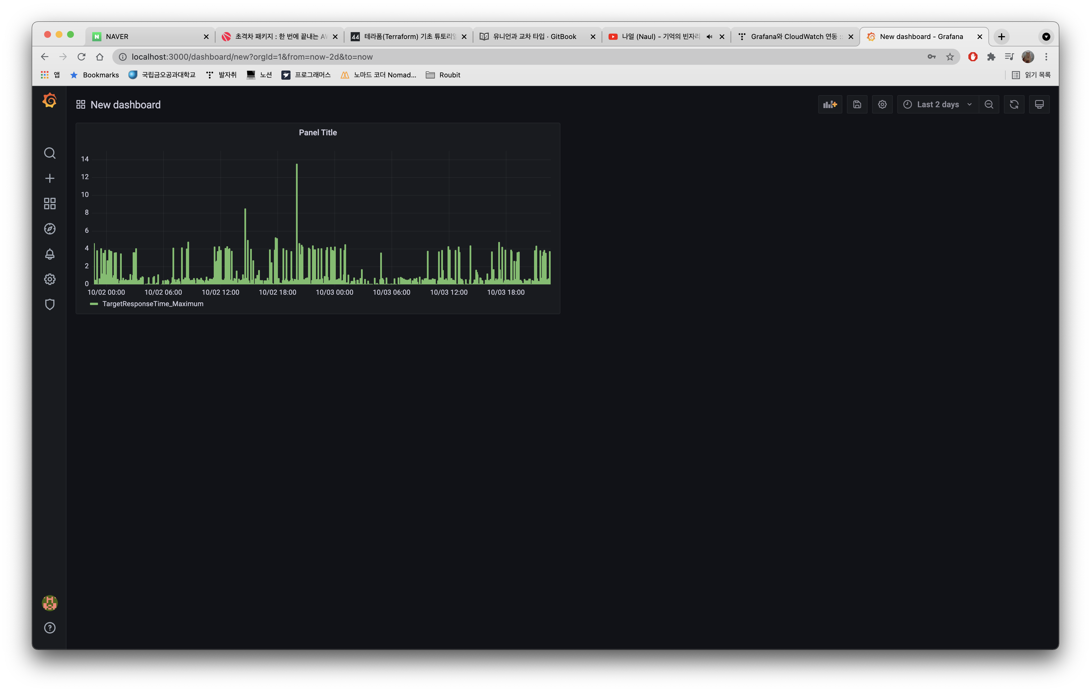 아래 사진과 같이 나오게 된다. 그래프가 1개밖에 없어서 허접해 보이지만...여러가지 데이터를 잘 조절해 두면은 보기 매우 편한 그래프를 완성할 수 있을 것으로 예상된다.