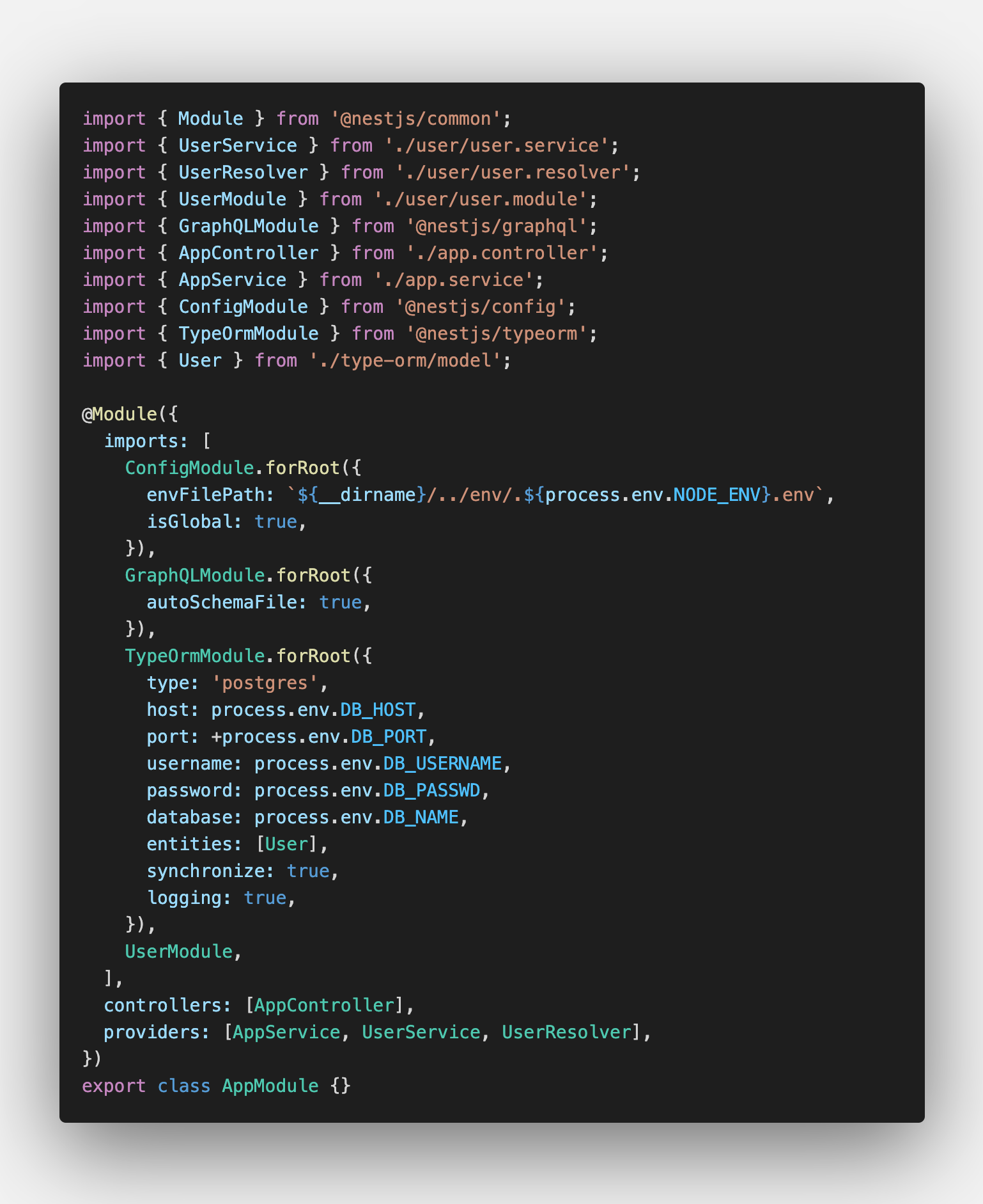 먼저 app.module.ts 파일에 ConfigModule을 불러와서 .env 파일에 있는 설정들을 사용할 수 있다. 나의 경우에는 실행할 때 일일이 변수를 입력하는 것이 비효율적이라 생각하여 dotenv를 사용하기로 했다. nodejs에는 dotenv 모듈이 있지만 nestjs에서는 자체적으로 ConfigModule이 존재하여 이걸 사용하면 된다.