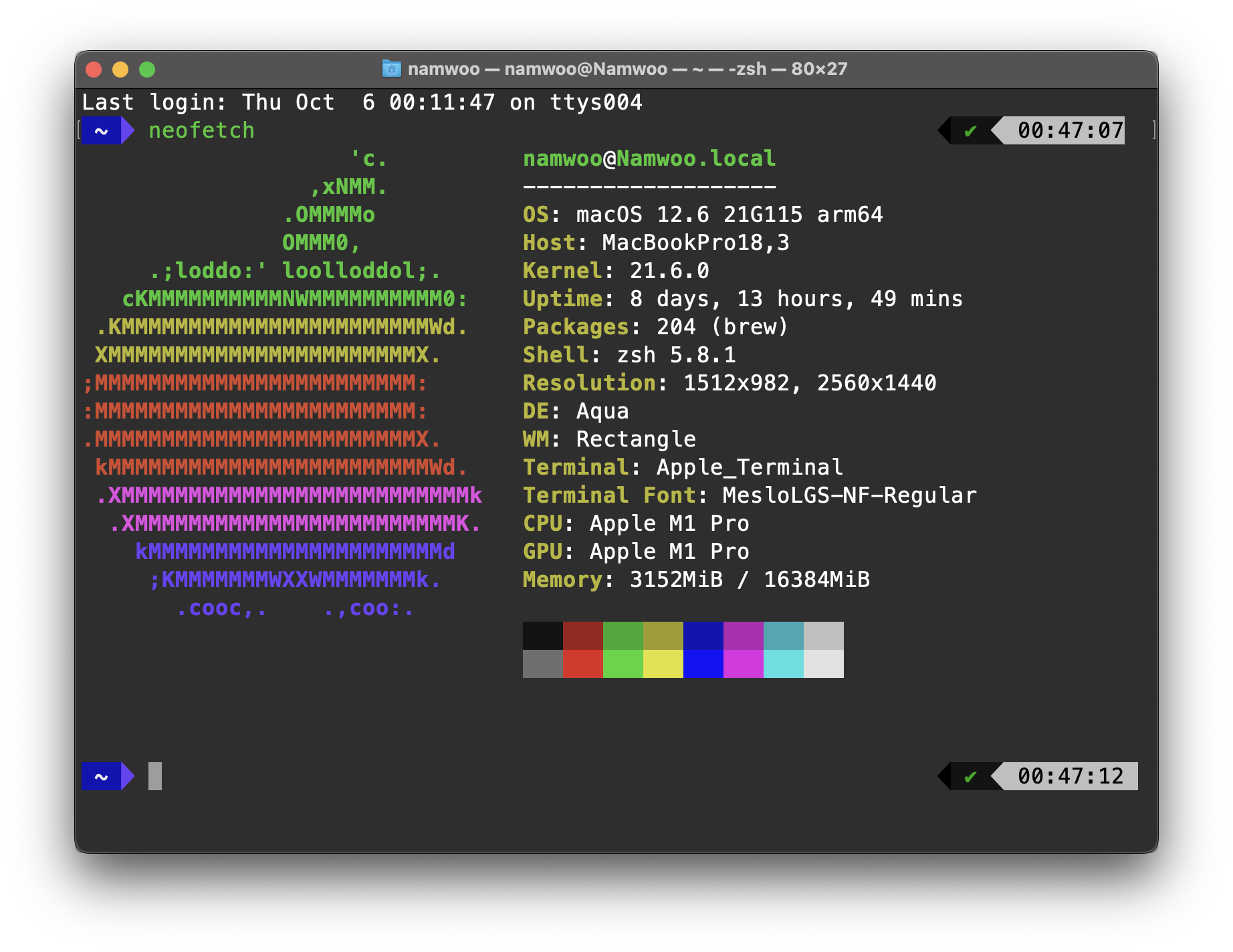 powerlevel10k 설치는 간단히 구글링하면 나온다. 다른분이 알아서 잘 설명해 주시리라 믿는다.