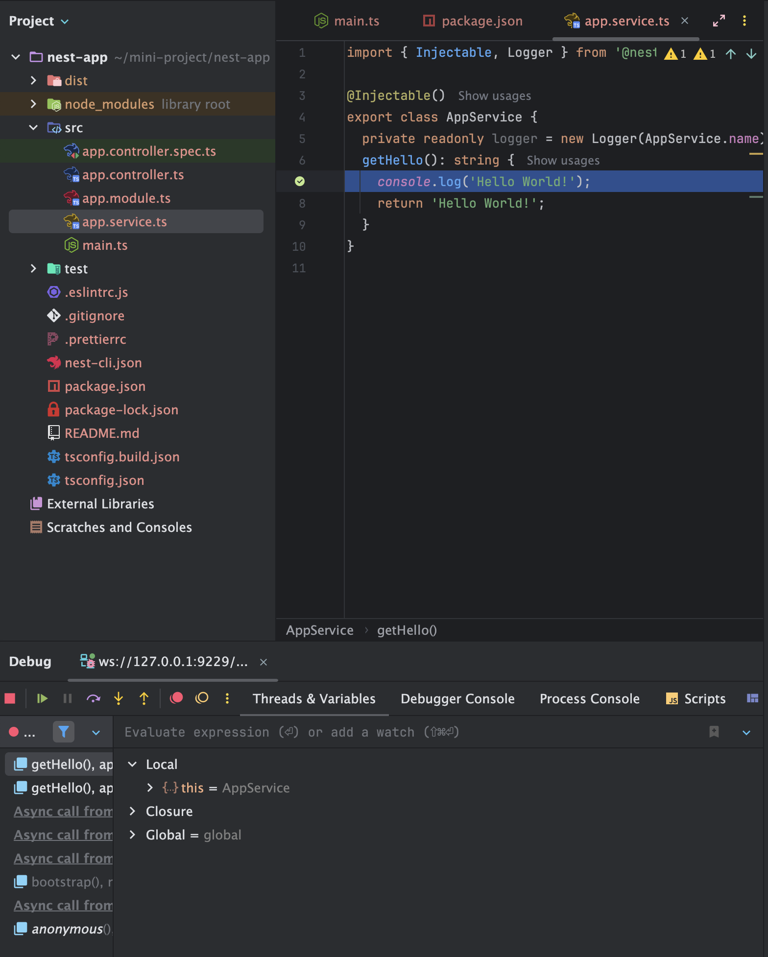 이러한 설정을 통해서 NestJS의 디버깅을 잘 할수 있게 되었다.