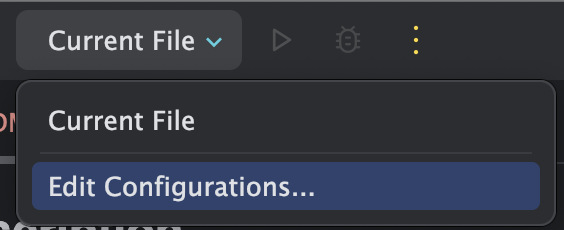이후 우측 상단의 실행 옵션에서 해당 스크립트를 사용하도록 설정한다. 설정방법은 다음과 같다.
